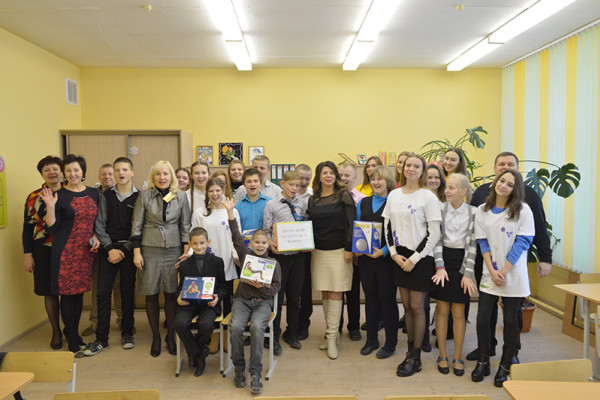 В рамках акции «Приложи руку» председатель первичной организации купаловского университета ОО «БСЖ», декан факультета экономики и управления Марина Карпицкая, заместитель декана по идеологической и воспитательной работе факультета Александр Куликов, старший преподаватель кафедры международного бизнеса и маркетинга Лариса Скворцова и студенты факультета – участники волонтерского отряда «Надежда» – навестили Вспомогательную школу № 1 г. Гродно. Купаловцы передали детям канцелярские товары, игрушки, книги, спортивный инвентарь, приобретенные на средства, вырученные от благотворительных ярмарок.