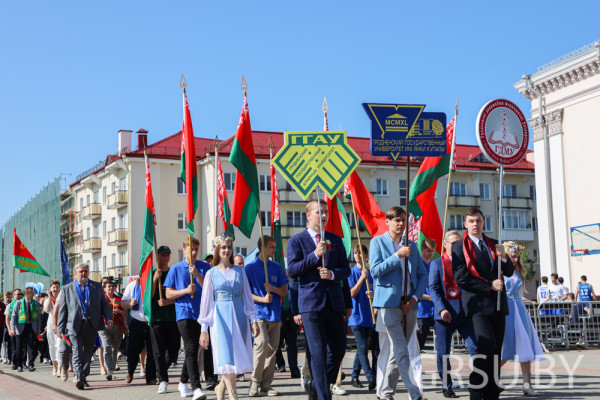 Праздник начался с торжественного шествия, в котором приняли участие представители различных отраслей Гродненского региона, организации и учреждения областного центра. Три вуза Гродненщины приняли участие в шествии, купаловцы в их числе! С площади Советской колонна двинулась по улицам Ожешко и Дзержинского к главной сцене города Гродно.